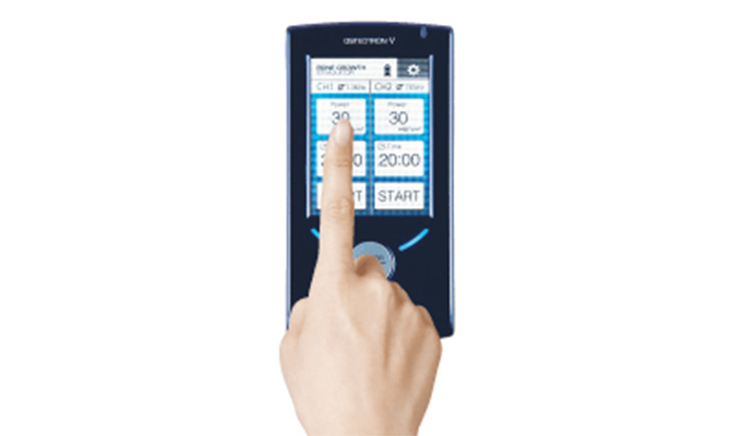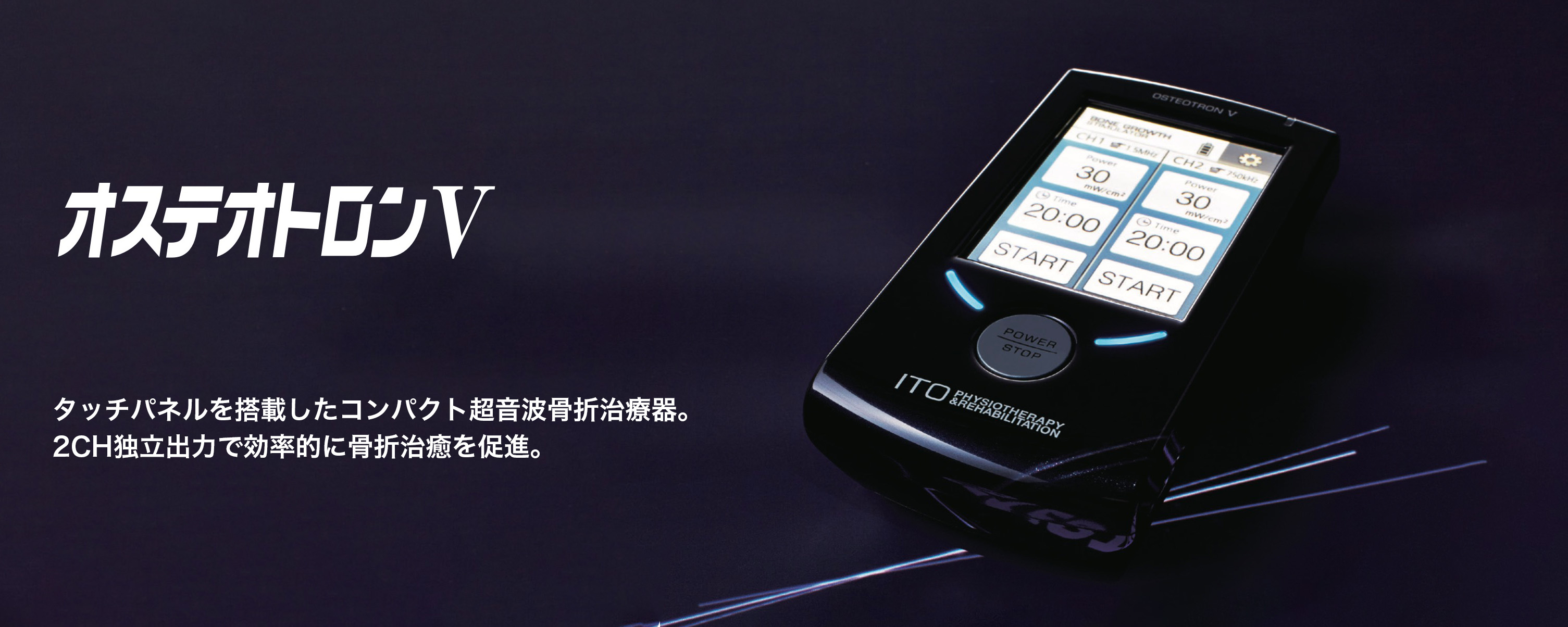 タッチパネルを搭載したコンパクト超音波骨折治療器。2CH独立出力で効率的に骨折治癒を促進。