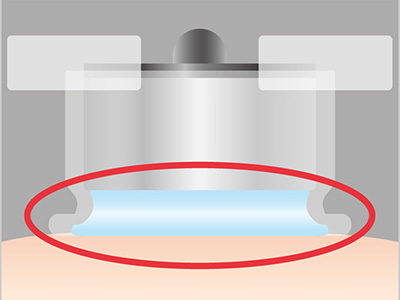 プローブの金属部が肌に直接当たらないため、痛みを軽減します。