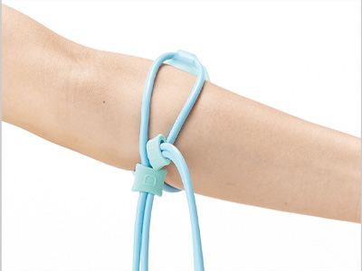 チューブの片側を患部に巻き、もう片側を輪の中に通します。