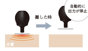 電極と肌との接地面積が小さくなる時に起こるスパーク問題を解消するため、電極が肌から離れた場合、自動的に出力を一旦ゼロにします。