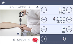ビームアプリケータ(15mm)によるポイント圧力波で集中的に治療します。