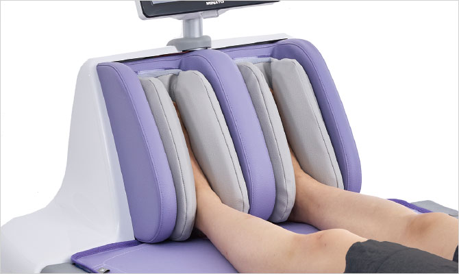 足首までホールドするエアバッグの足底部分に新気室を追加しました。ホールド機能により、脚部の動きを抑制し、刺激感を高め、錘をのせる手間を削減しました。