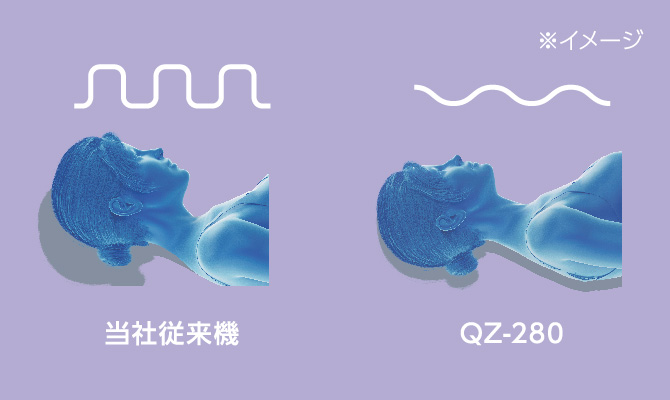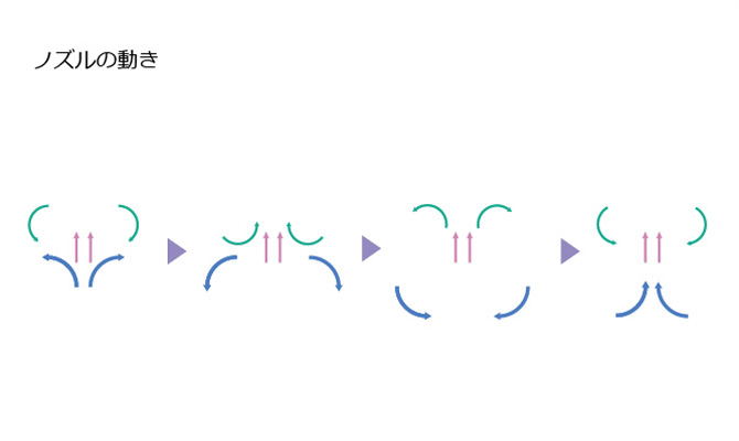 噴流を止めずにノズル切り替えが可能になりました。噴流切り替え時の衝撃が低減されたため、マッサージの流れが途切れず、 頭部の揺れを低減します。